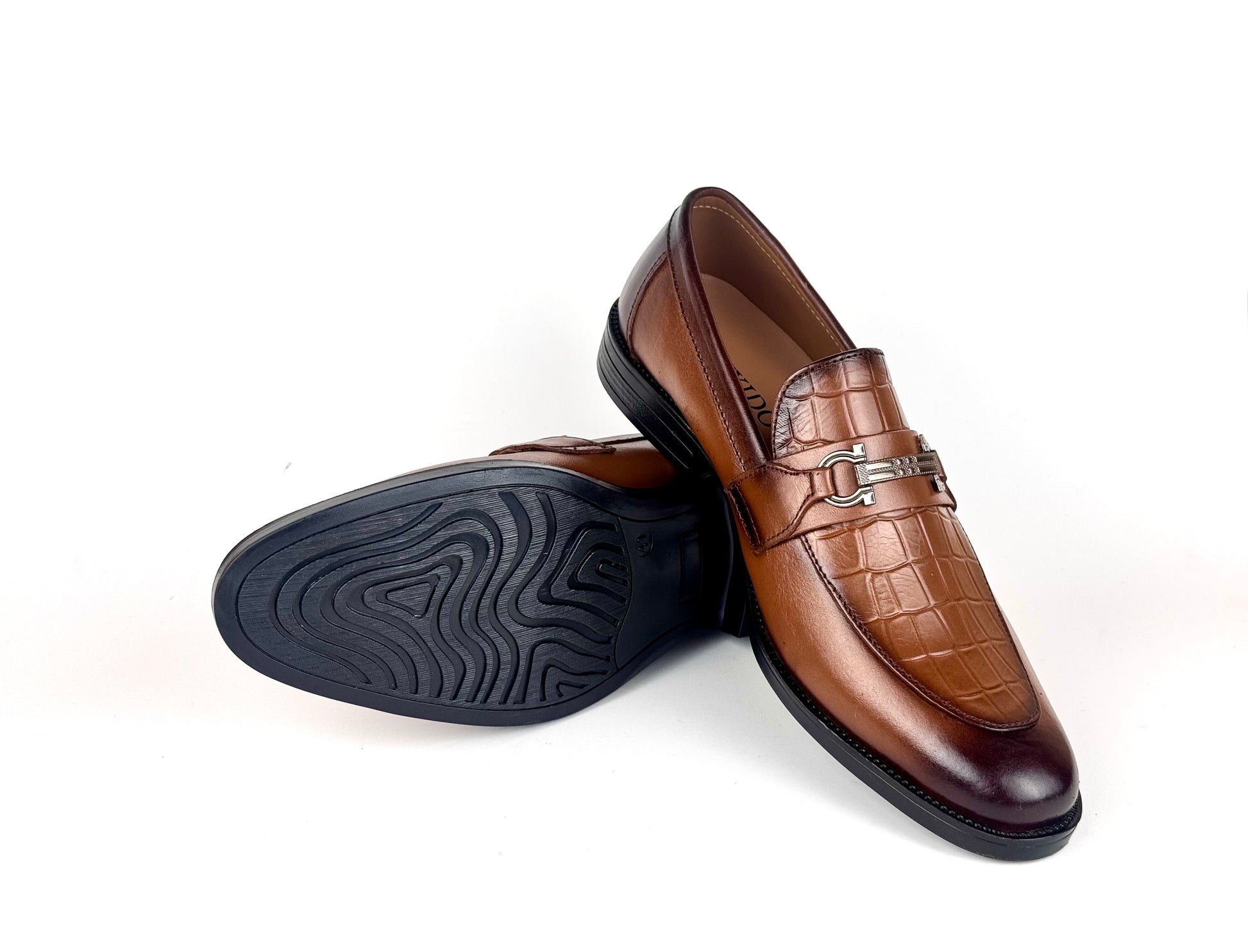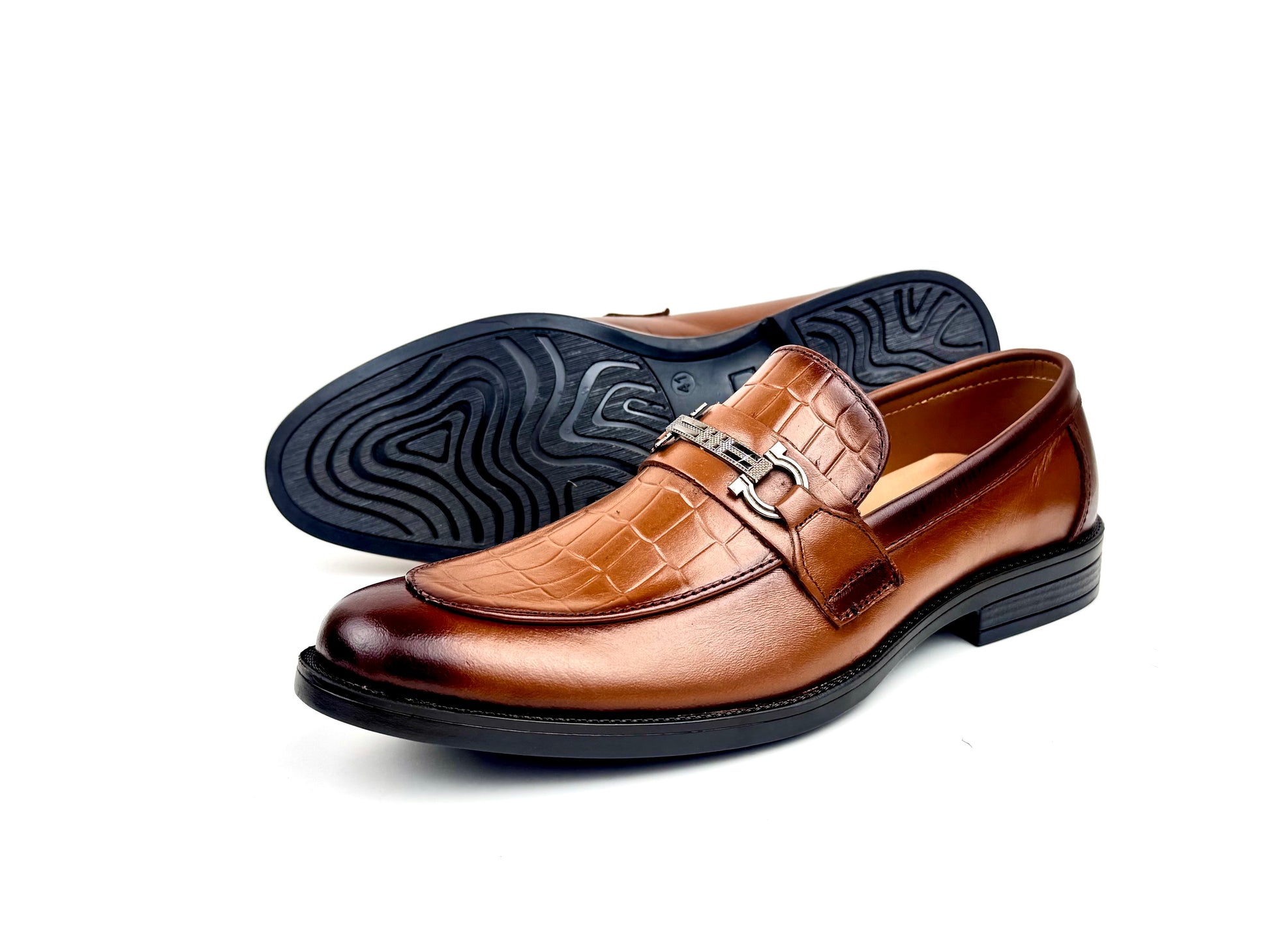 A refined men’s dress shoe crafted from soft, premium leather, highlighted by a crocodile-textured front that adds a touch of bold sophistication. The sleek metallic buckle enhances its modern appeal, creating a perfect blend of elegance and contemporary style. Designed for comfort and durability, this shoe is ideal for formal events, office wear, or any occasion where you want to stand out with timeless class.