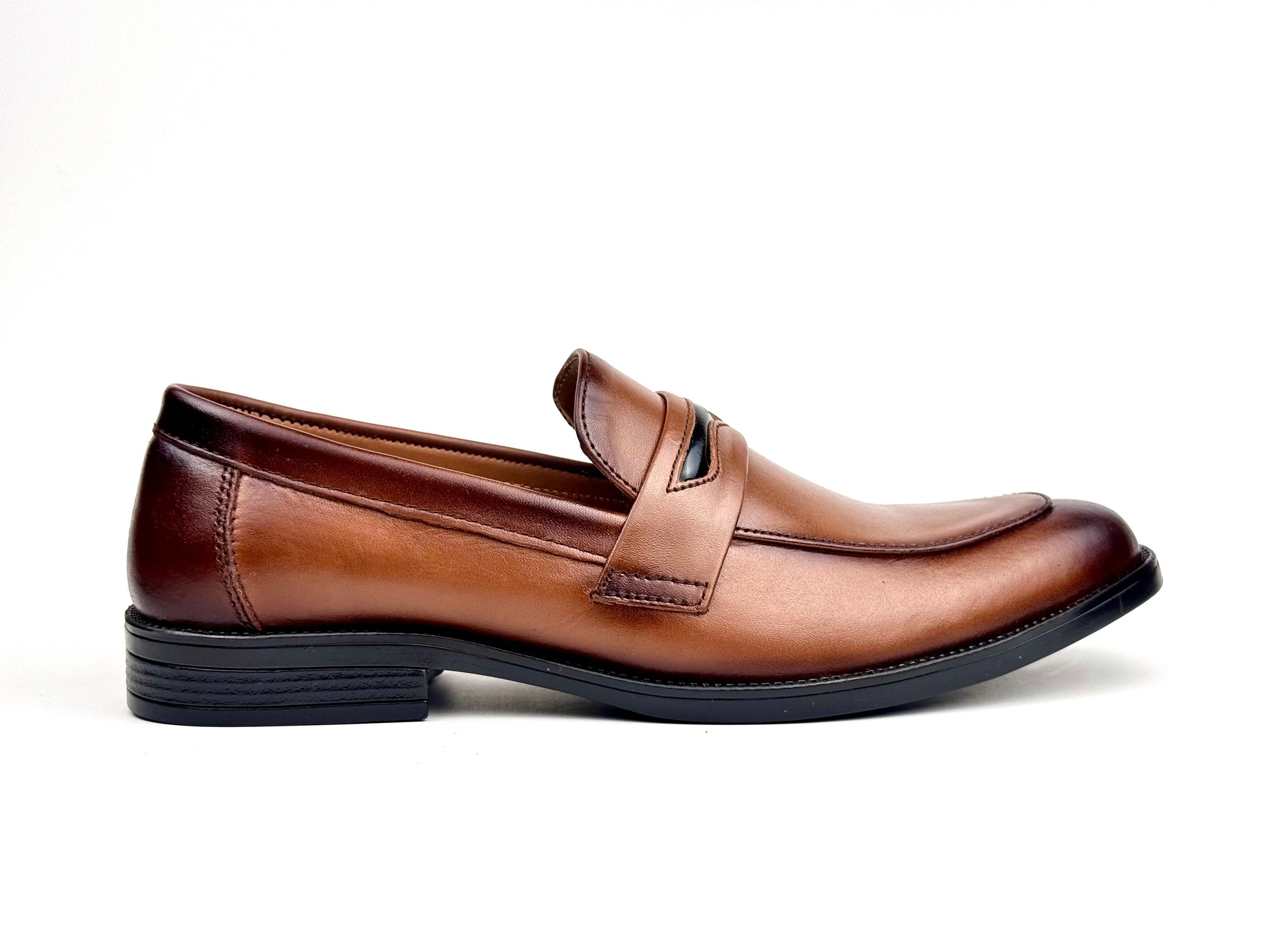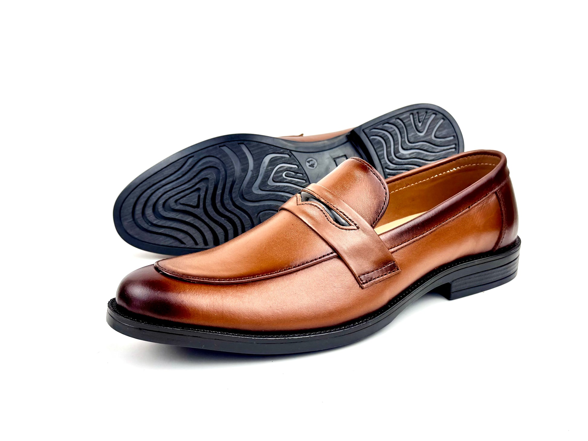 A refined men’s dress shoe crafted from supple soft leather, featuring a subtle strap with the signature penny slot and delicate embossed accents. With a slightly rounded toe for timeless elegance and all-day comfort, this shoe balances classic sophistication with modern style perfect for formal events or elevating everyday attire.